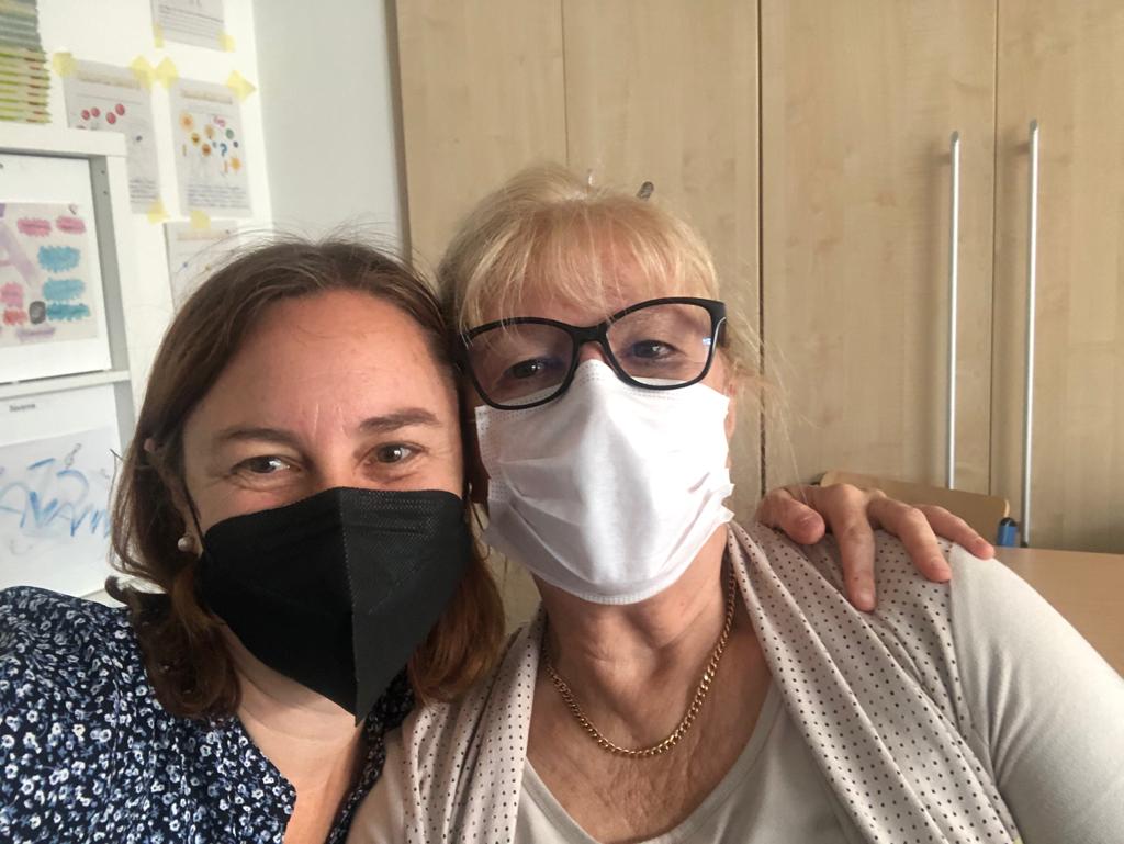 mit den Schüler*innen der Klasse von Frau Kummer arbeiten. Zunächst aber sind Coronatests angesagt. Obwohl alle von uns geimpft sind, ist das eine vorgeschriebene Sicherheitsmaßnahme, der wir auch gerne nachkommen.