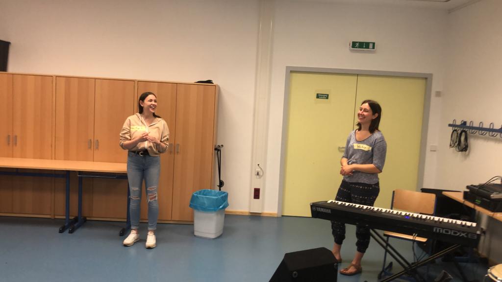 Anfangs etwas zurückhaltend lassen sich die Schülergruppen zunehmend begeisterter auf die Angebote der Student*innen ein, machen bei der Bodypercussion mit, singen die Songs, die im Projekt entstanden sind und eine Schülerin traut sich sogar einen der Songs solistisch